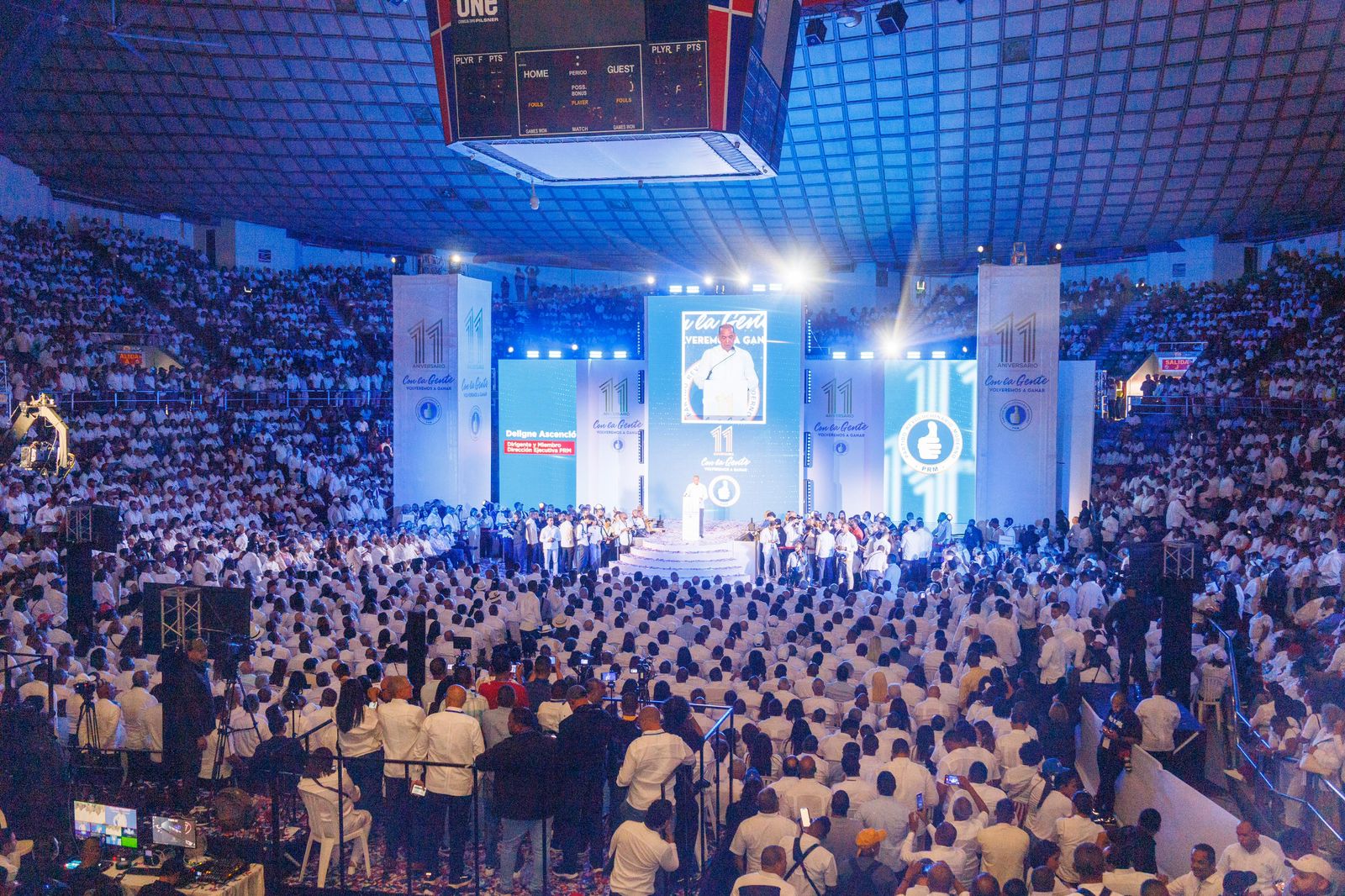 El mandatario fue ovacionado como líder del PRM, ante un abarrotado escenario de la Arena del Cibao, en el que miles de perremeistas celebraron los 11 años de fundación del PRM, y manifestaron su entusiasmo por continuar cambiando y desarrollando al país.