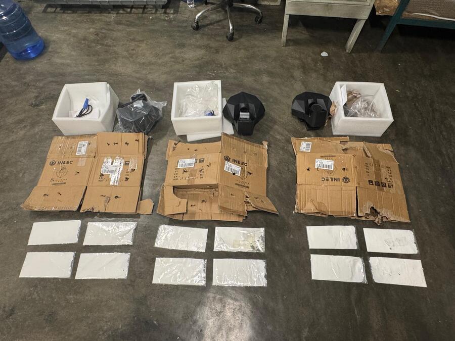 Tras realizar una inspección más rigurosa, se encontraron en seis de ellas, un doble fondo en las tapas conteniendo 12 láminas de presunta cocaína introducidas en fundas plásticas transparentes, con un peso superior a 900 gramos.