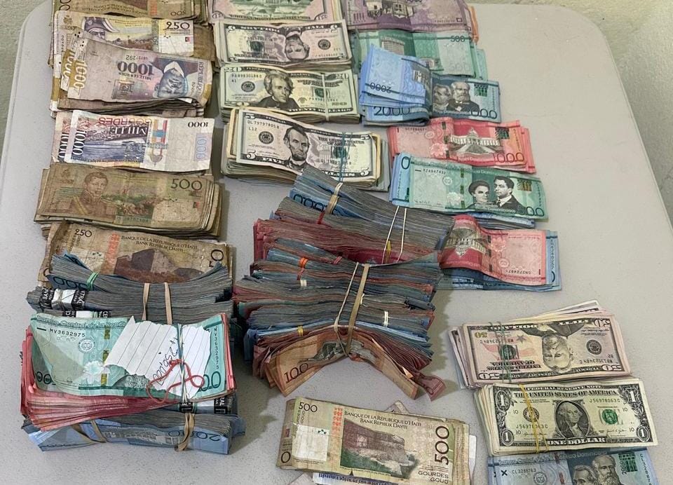 Al momento de la inspección fueron encontrados RD$3,524,250.00 (tres millones quinientos veinticuatro mil doscientos cincuenta pesos dominicanos), US$14,250.00 (catorce mil doscientos cincuenta dólares estadounidenses) y G 231,250.00 (doscientos treinta y un mil doscientos cincuenta gourdes haitianos).