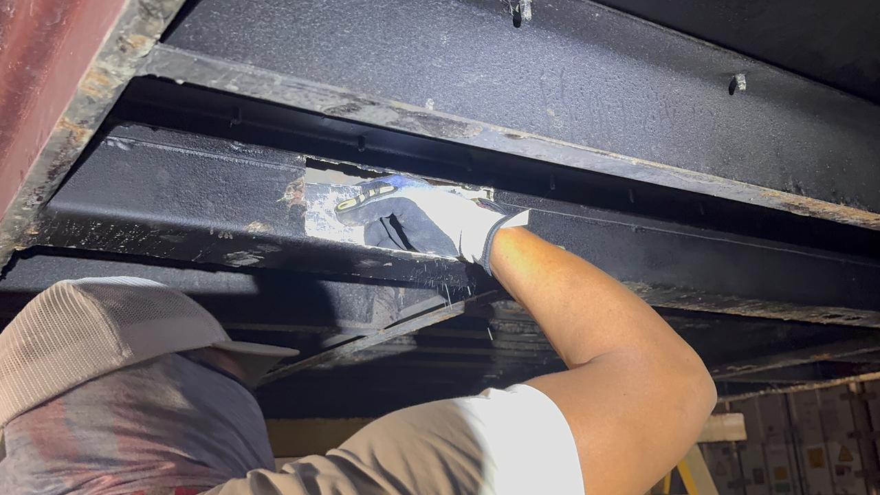 Durante la revisión inicial se detectaron inconsistencias en la estructura del contenedor, por lo que se procedió a realizar una inspección más exhaustiva.