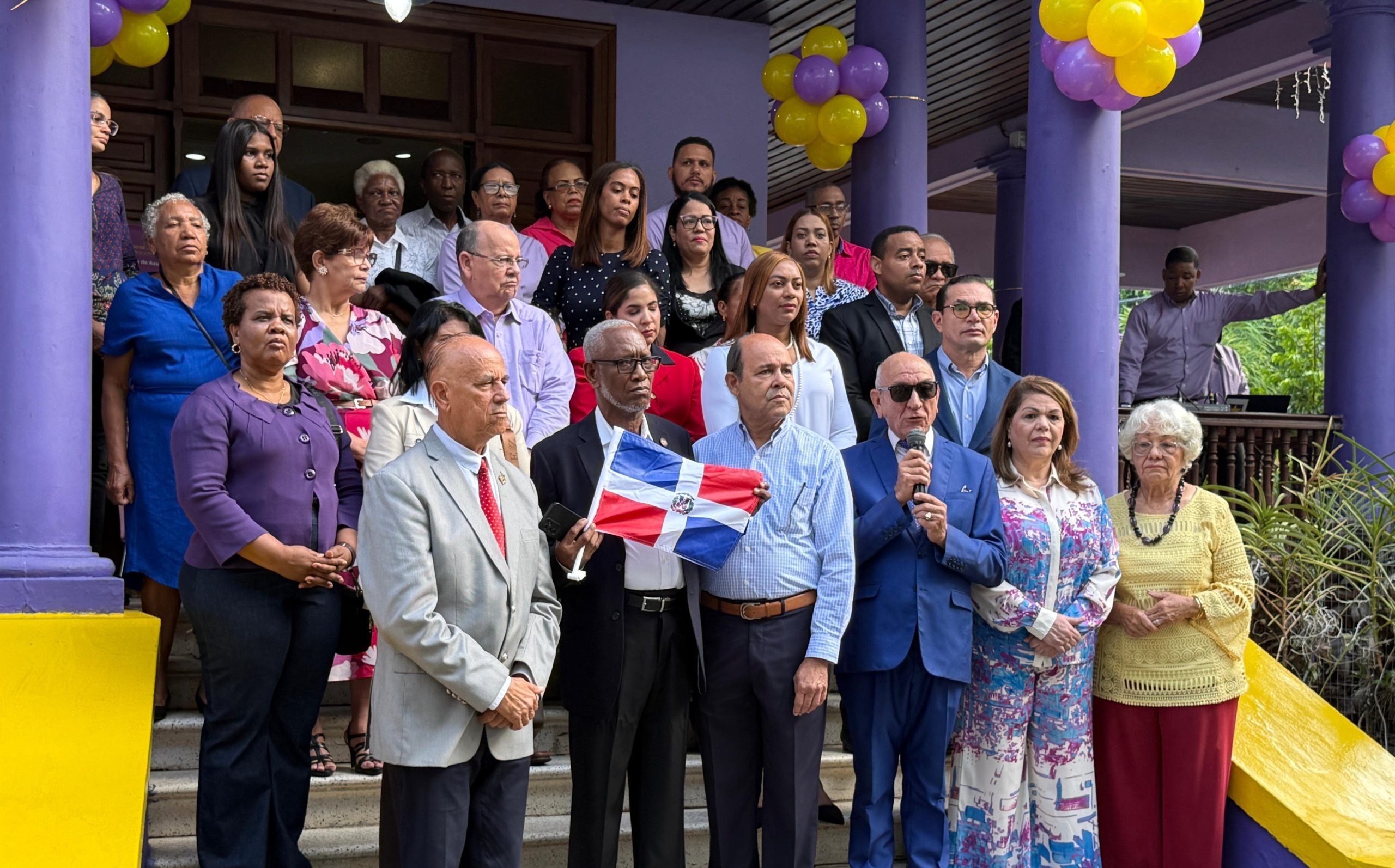 De acuerdo a una nota de prensa, la actividad inició con el tradicional izamiento de las banderas nacional y del partido, a cargo de los miembros del Comité Central, Luis de León y Aquilina Alcequies. El acto, organizado por la Comisión de Celebraciones y Conmemoraciones del PLD, fue ambientado con los himnos Nacional y del partido morado.