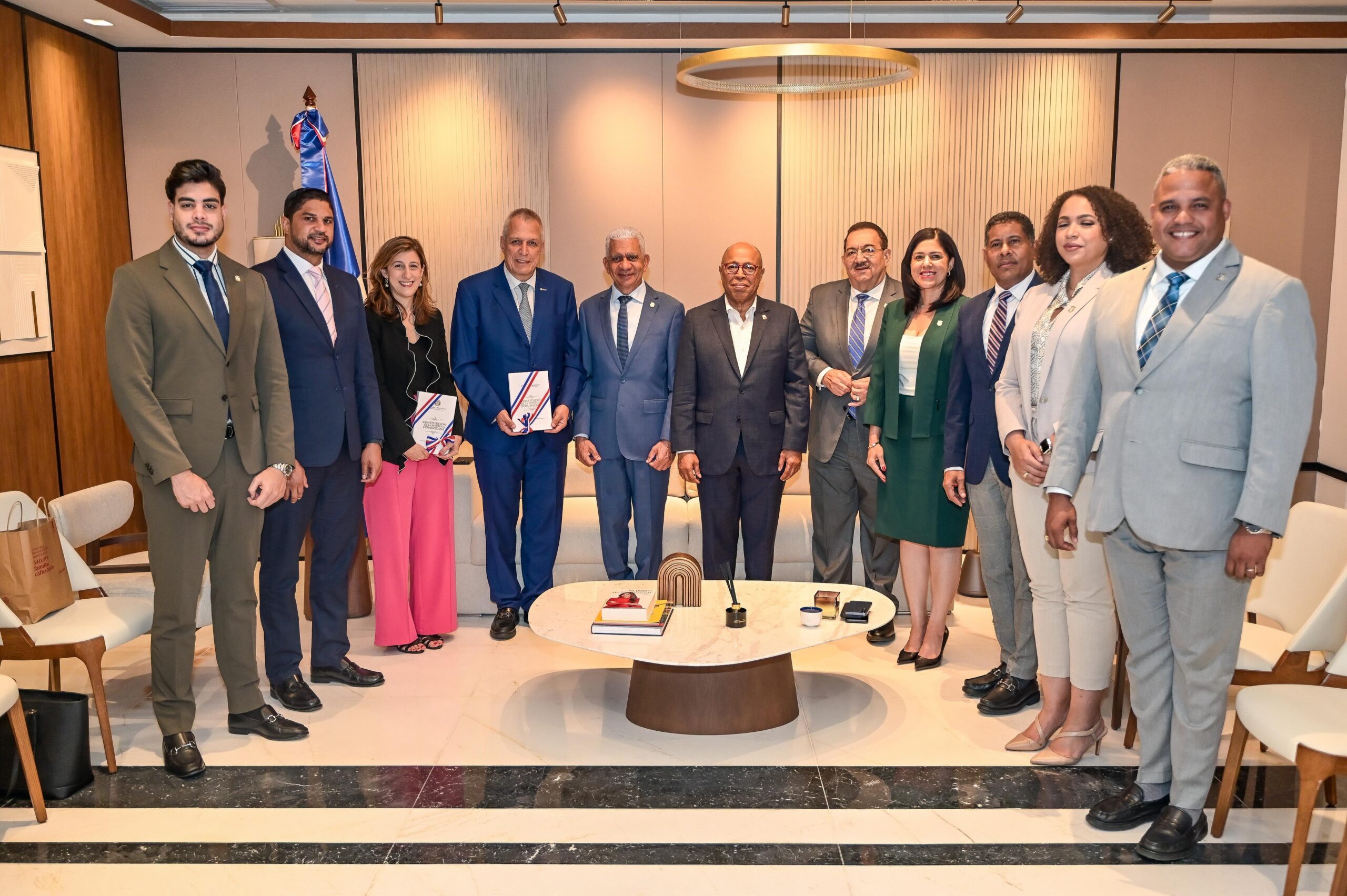 Como un gesto de cortesía, Ricardo de los Santos y Alfredo Pacheco, obsequiaron al senador Germán Blanco Álvarez, un ejemplar tamaño libro de la nueva Constitución Dominicana.