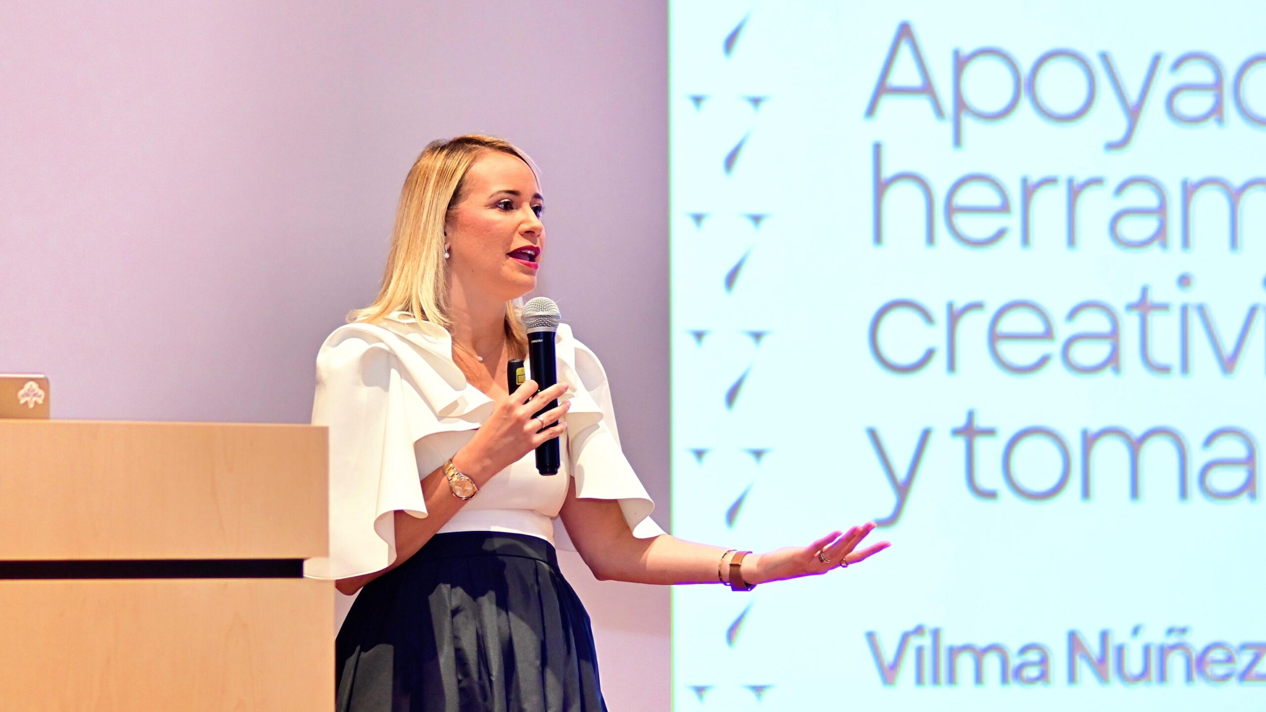 “Las personas creen que la inteligencia artificial (IA) viene a quitarte el trabajo, pero la IA viene a amplificar tu liderazgo y tu humanidad; a eliminar muchas tareas repetitivas que hacemos diariamente, viene a enterrar las excusas, pues muchas veces procrastinamos un trabajo que ya se puede automatizar”, destacó la consultora estratégica de negocios y marketing Vilma Núñez durante su participación.